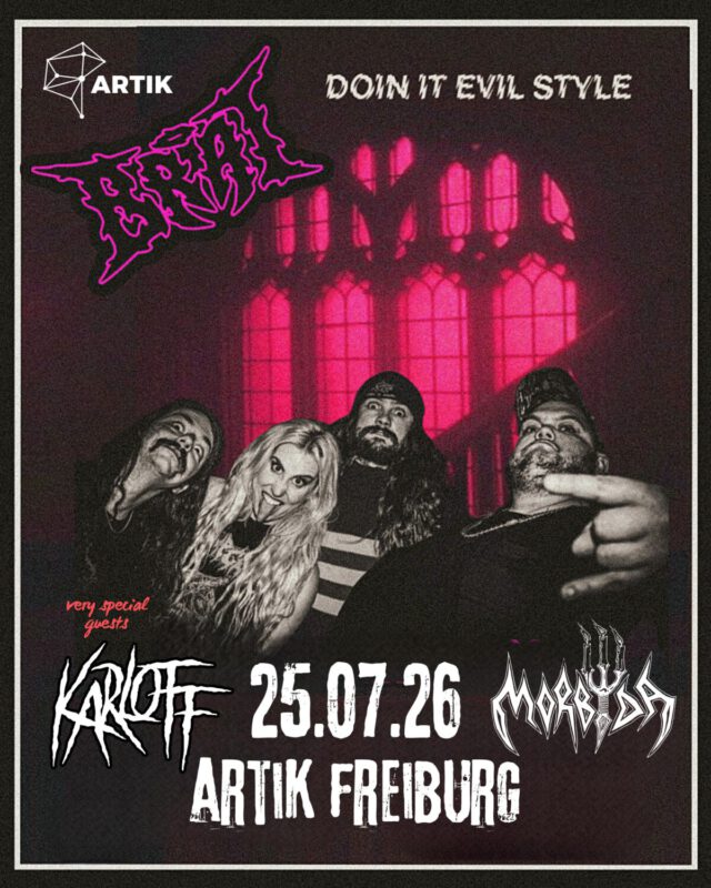 Roh, dreckig, KARLOFF. Mit ihrem zweiten Album „Revered By Death“ entwickelt die Formation ihren massiven Metalpunk in einem noch zäheren, schleppenden und emotional deutlich trostloseren Gewand weiter. Der Sound tönt nach dunkler Straßenecke, urbanem Schmutz und etwas, was die Zähne beunruhigend wackelig wirken lässt. Während du noch am Abtasten bist, haben dir Karloff schon die komplette Kauleiste rausgezogen. Ohne Betäubung. Wie sich das anfühlt, haben einige von euch schon auf dem SkullCrusher Fest 2024 erfahren dürfen und dennoch oder gerade deswegen können wir von dieser unfassbar geilen Combo nicht genug bekommen.